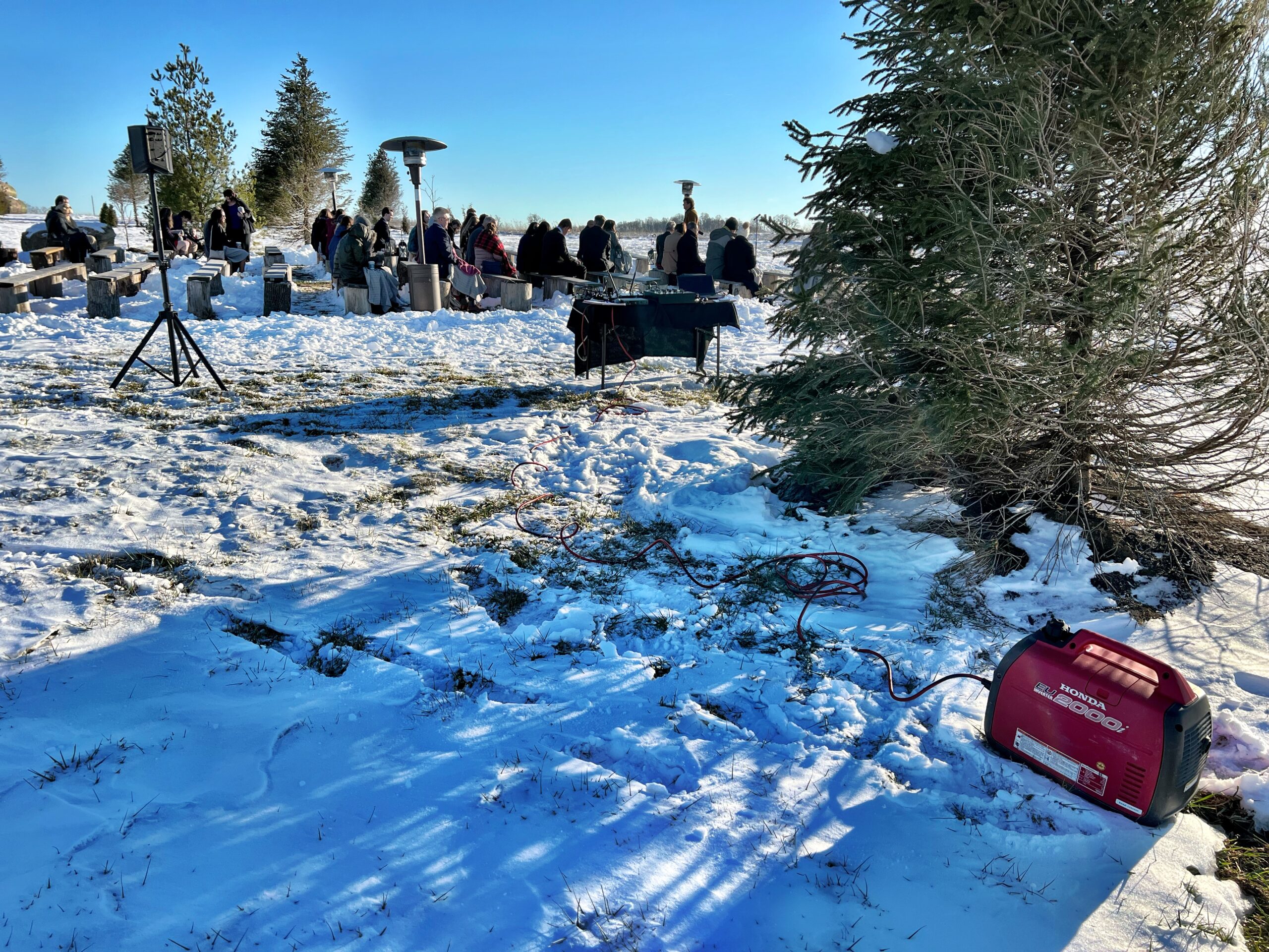 For venues and temporary event locations lacking suitable electric service, I can power both my larger primary and smaller secondary sound systems using my quiet Honda EU2000 Gas Generator and/or solar-powered EcoFlow Battery Power Stations. This is often the case for outdoor tent events without power or where long extension-cord runs are impractical/unsuitable. The cost for this service is $75.00.
